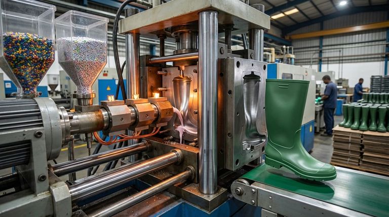 | Stampaggio Principale | Fusione di pellet di PVC, iniezione in uno stampo per stivali, raffreddamento. | Crea un guscio di stivale senza cuciture e impermeabile. |