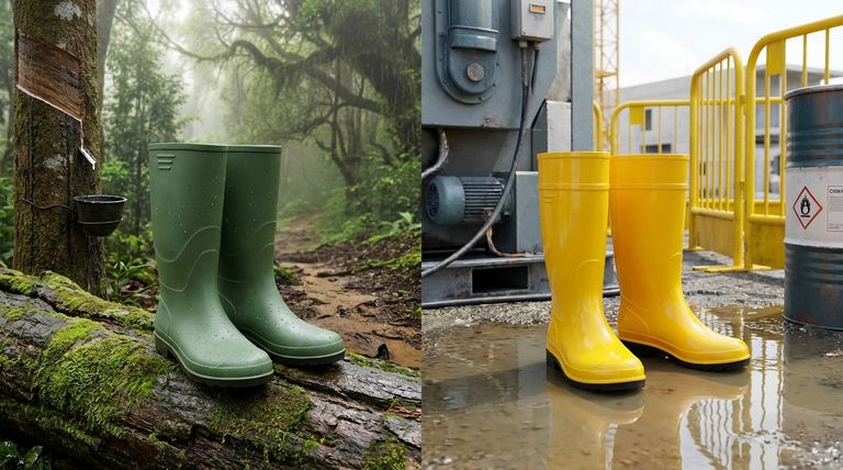 La stragrande maggioranza degli stivali di gomma è realizzata con uno di questi due materiali principali: gomma naturale o una plastica sintetica nota come cloruro di polivinile (PVC). Sebbene possano sembrare simili, le loro prestazioni, il comfort e i casi d'uso ideali sono fondamentalmente diversi.