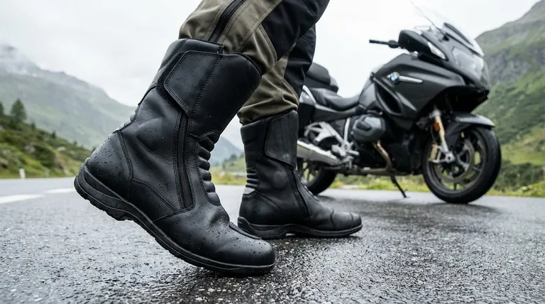 La sfida principale per uno stivale da moto da turismo è essere facile da indossare, comodo per tutto il giorno e completamente impermeabile. La combinazione cerniera laterale e velcro è diventata lo standard del settore perché risolve tutti e tre questi problemi in modo più efficace di qualsiasi altro sistema.