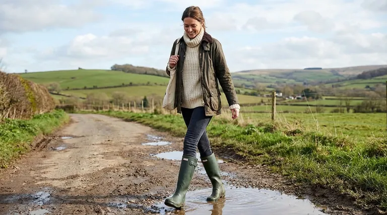 - Se la tua priorità è la funzionalità e l'asciutto: Abbina i tuoi stivali di gomma a pantaloni resistenti all'acqua o infila jeans skinny per la massima protezione.