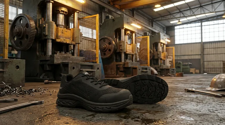 Per i lavoratori esposti a macchinari pesanti, la raccomandazione definitiva è una scarpa antinfortunistica con puntale in acciaio. Questa caratteristica specifica è progettata per fornire una protezione superiore contro i due pericoli più critici in questo ambiente: impatti di massa elevata e compressioni estreme.